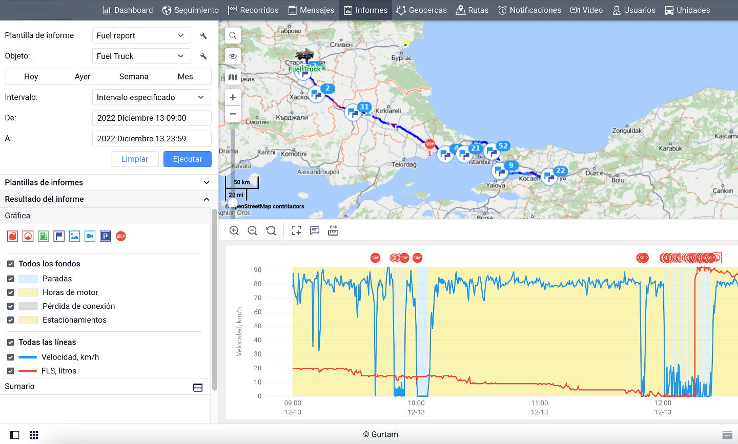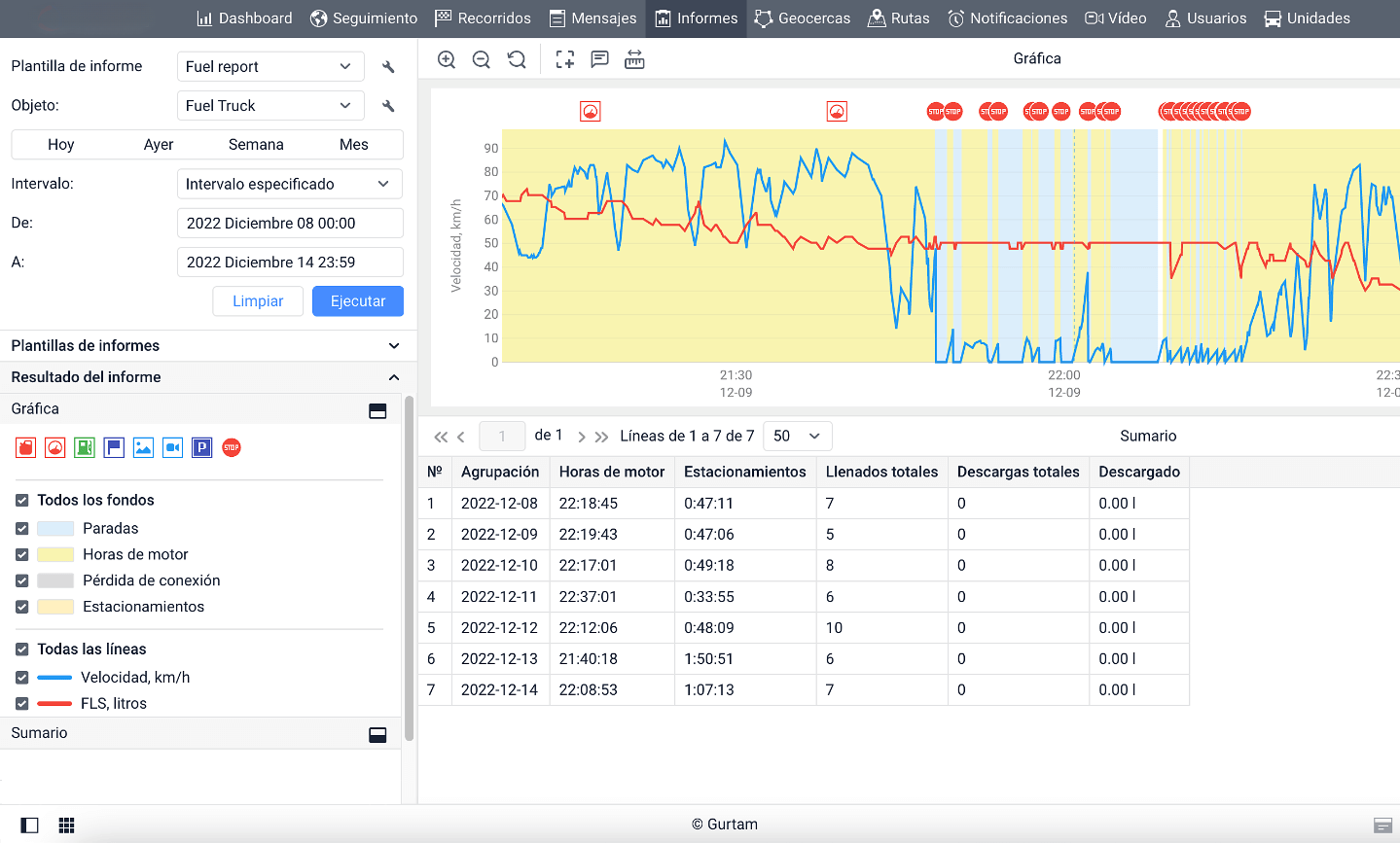 Con nuestra solución cada cliente podrá beneficiarse de más de 300 parámetros de seguimiento de vehículos. Los datos se muestran en tablas y gráficos, lo que simplifica el análisis y planificación comercial.