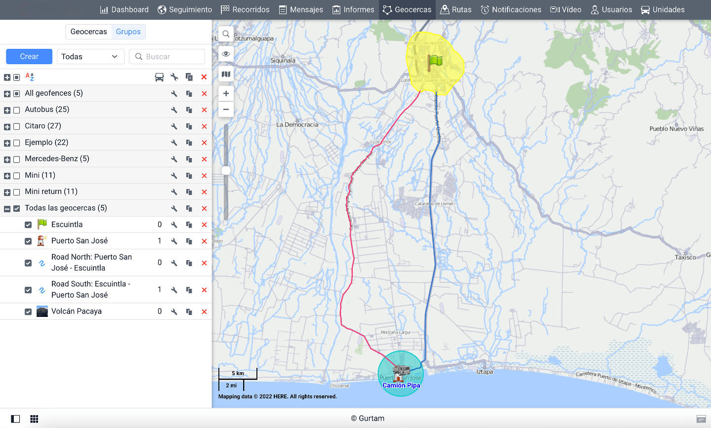 Cree geocercas y controle el movimiento de unidades dentro o fuera de ellas
