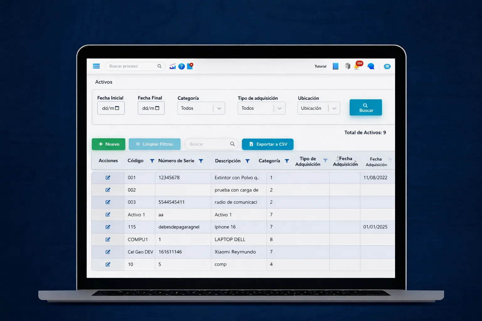 Ingresa todo el detalle e información de los activos en la empresa y añade códigos de barra o QR.