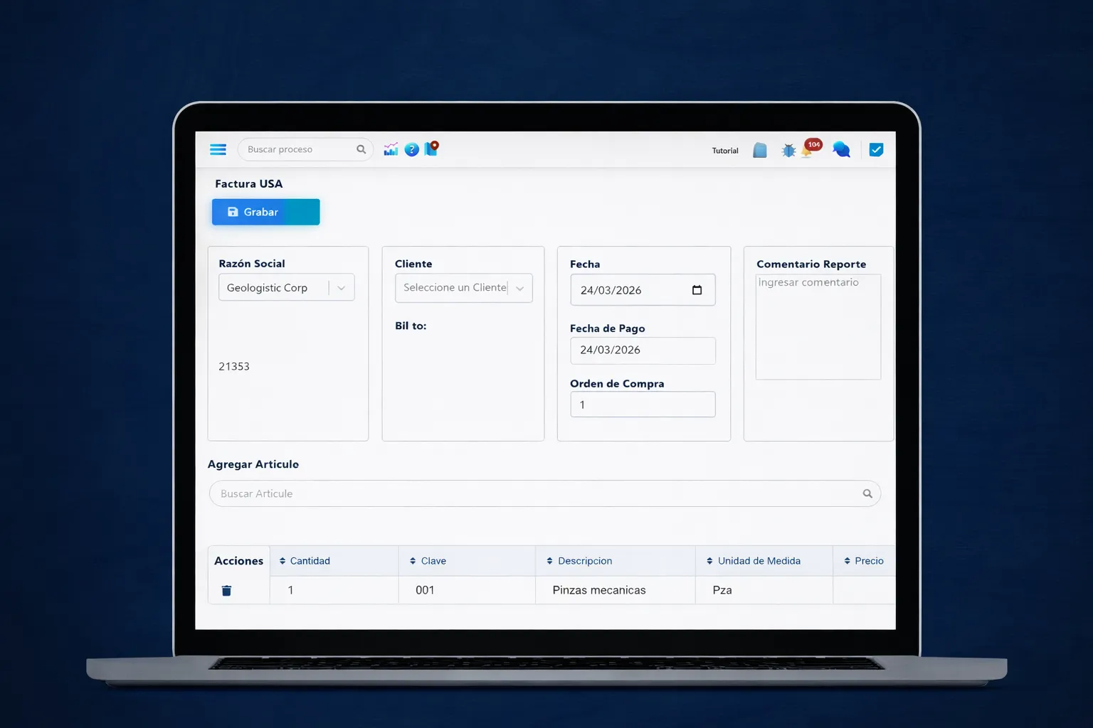 Genera facturas y añade su correspondiente carta porte con un formato personalizado, administra todos tus clientes y genera reportes.