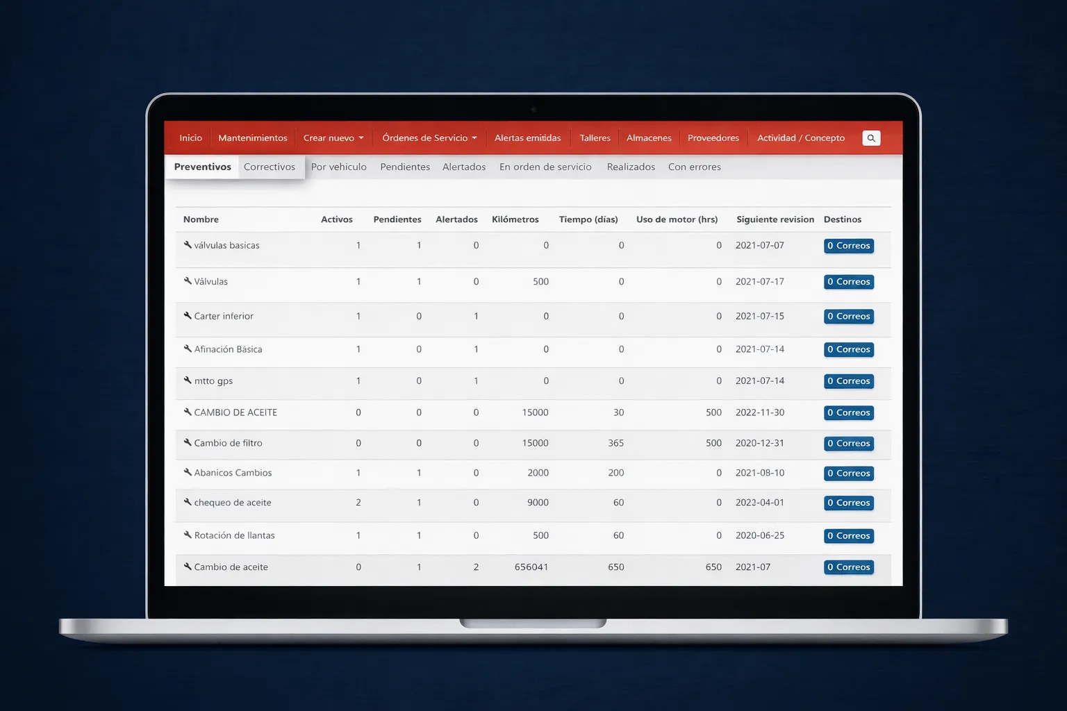 El módulo de mantenimiento de flota de RedGPS permite conocer el estado de cada activo y todos los mantenimientos realizados como así también los mantenimientos programados pendientes.