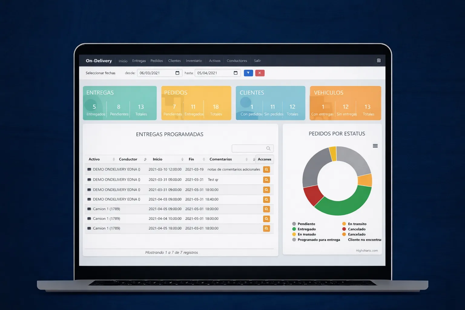 OnDelivery es una plataforma de gestión de pedidos y logística inteligente de última milla con optimización automática de rutas, manejo de inventarios y una aplicación dedicada para repartidores.