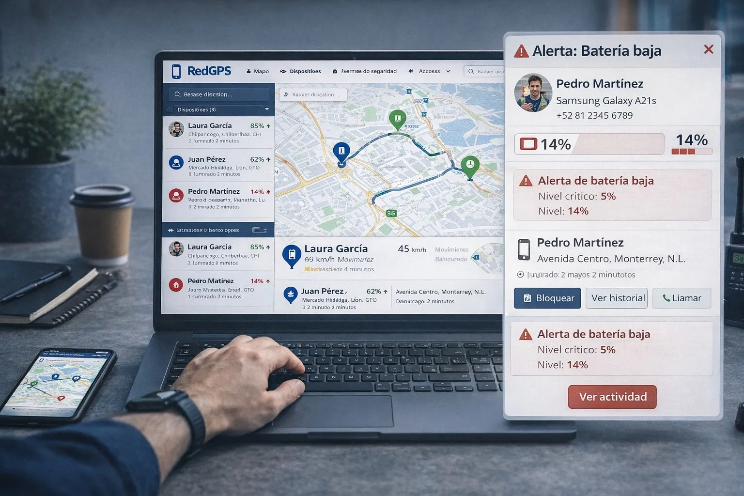 Convierta cualquier smartphone en un activo rastreable en plataforma, con aplicaciones de seguridad y perfectamente integrado a todo el ecosistema de RedGPS.