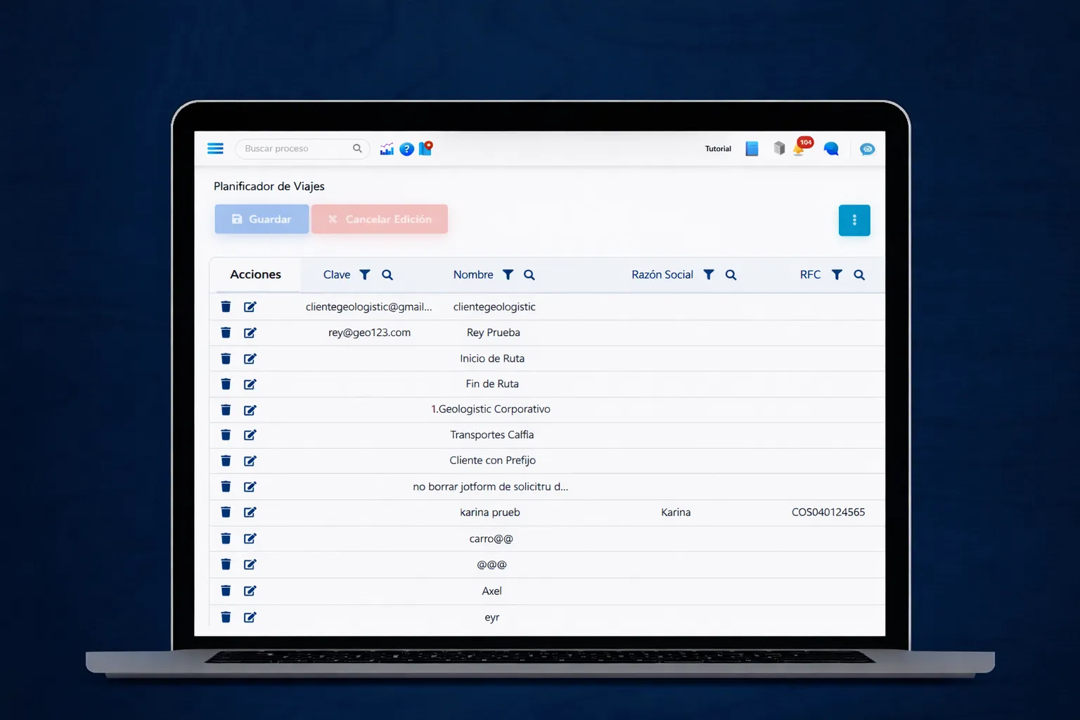 - Gestión de coordinadores y despachadores
